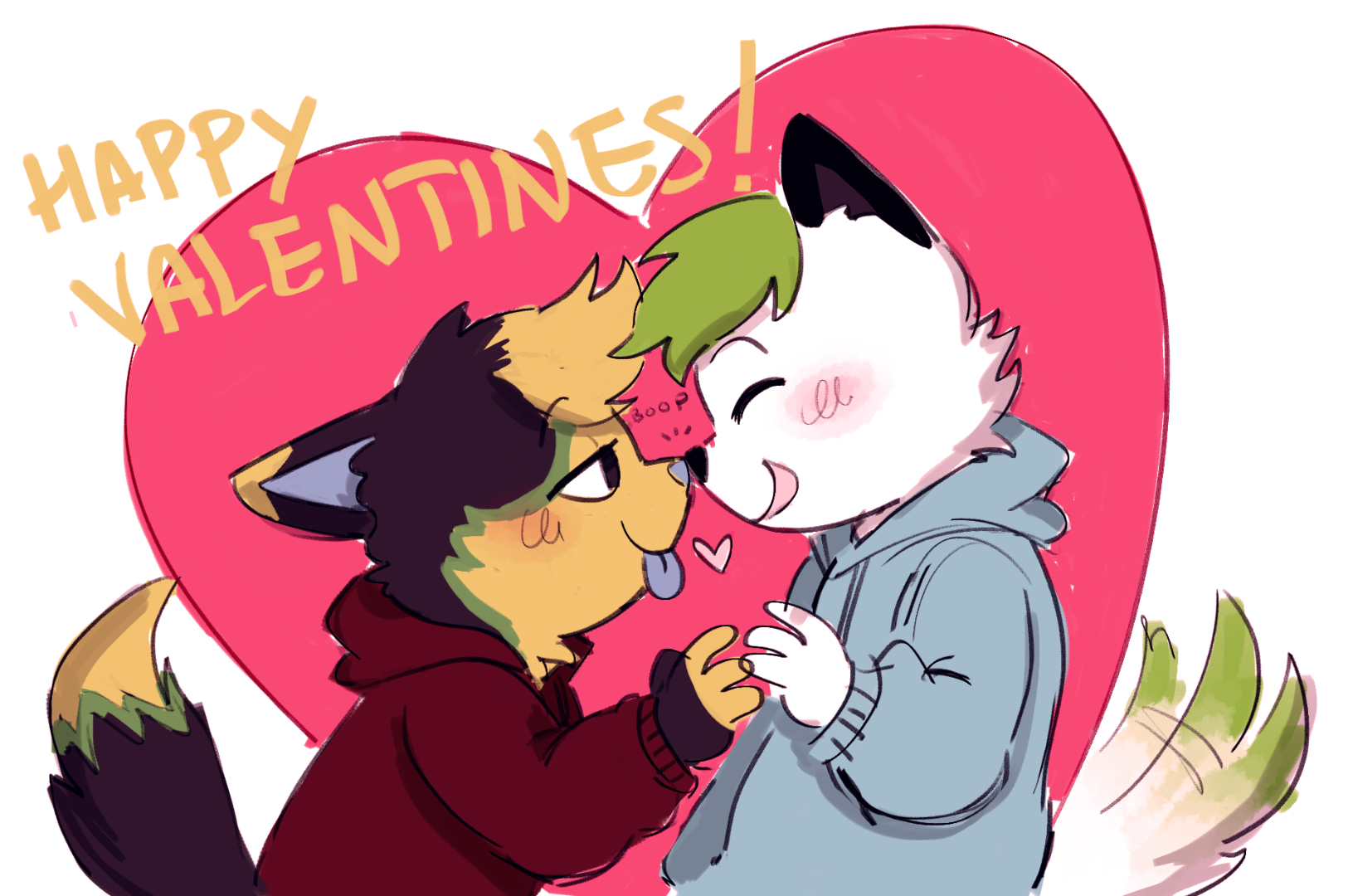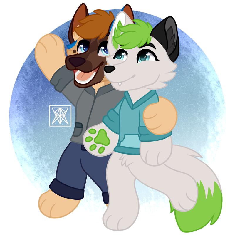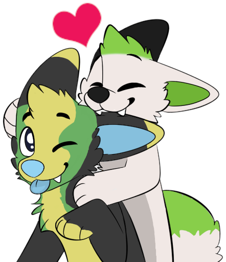 The new year started off with a bang. I asked RizGBlue if he could recolor one of my stickers to look like I was hugging my boyfriend. He acquired a fresh fursona (was sick of his old one) and promptly this adorable image saw the light of day.